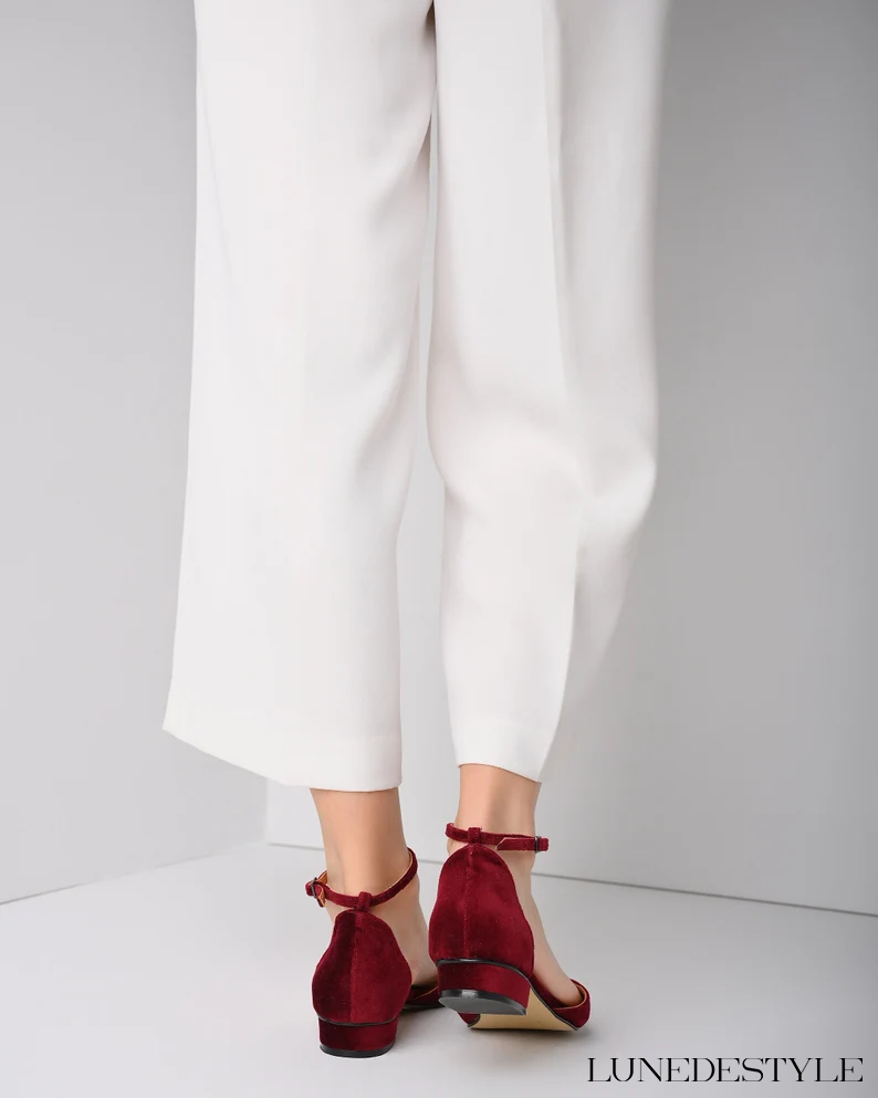 Apportez une touche de sophistication intemporelle à votre tenue avec ces chaussures de mariage en velours bordeaux. Leur design raffiné allie style et confort, parfait pour une journée spéciale.