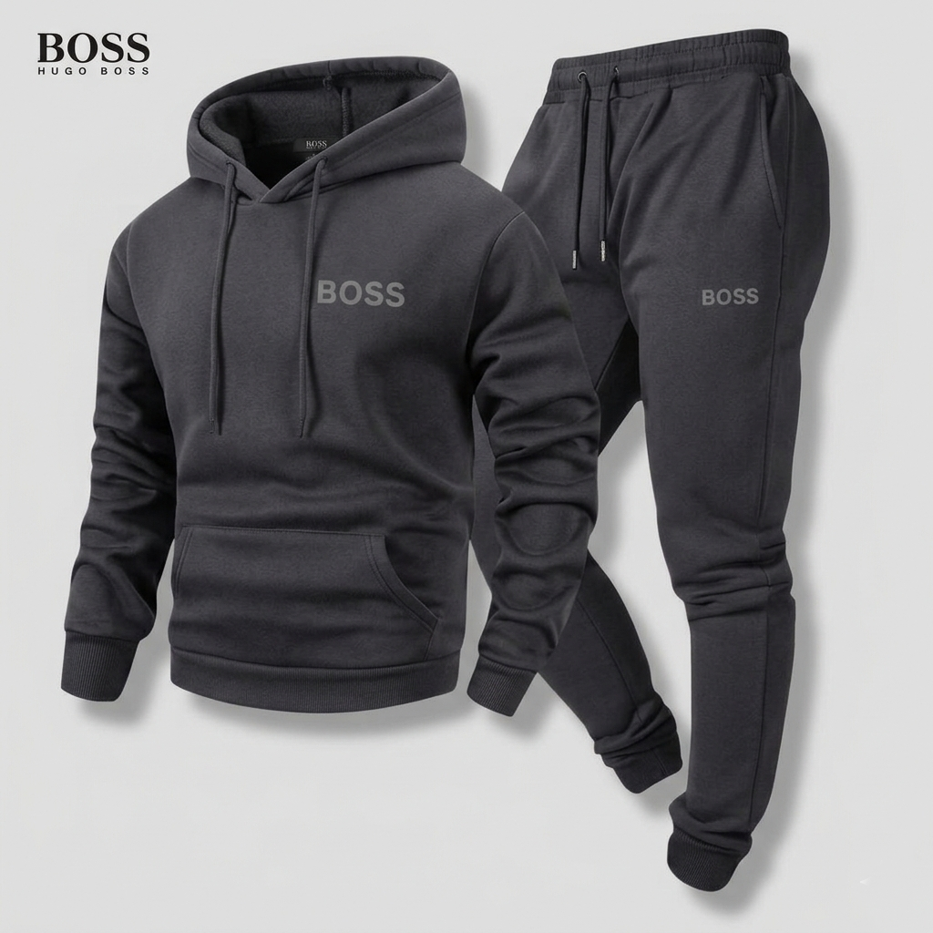 Confectionné dans un tissu mélangé coton de haute qualité avec une élasticité supplémentaire, cet ensemble garantit respirabilité et liberté de mouvement dans toutes les situations. Le sweat à capuche est doté d'une capuche ajustable avec cordon de serrage et d'une poche kangourou spacieuse pour un maximum de praticité, tandis que le pantalon de jogging est doté d'une taille élastique et de poignets aux chevilles pour un ajustement sûr et moderne. La doublure intérieure douce offre de la chaleur sans alourdir, ce qui le rend idéal à porter en superposition lors des journées plus fraîches ou seul pendant les saisons douces.
